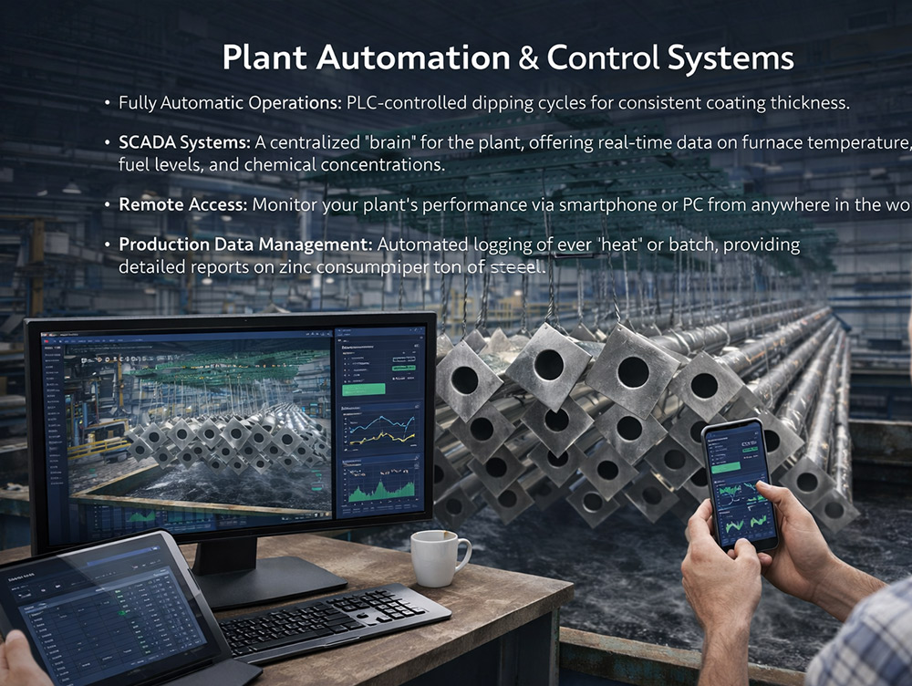 - Production Data Management: Automated logging of every “heat” or batch, providing detailed reports on zinc consumption per ton of steel.